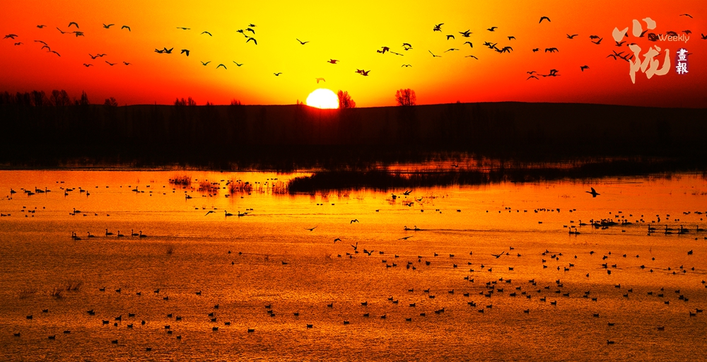 在寒潮來臨之前,成群的候鳥如約而至,它們穿越重山、飛越萬里,只為在這片濕地上安家落戶。每年,這里都會聚集起100余種4萬多只的水鳥,為這片自然之地增添了一抹絢爛的色彩。
