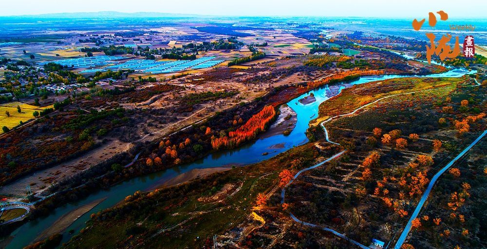 河堤兩岸各種樹木及灌木疊翠流金,綿延數(shù)里;碧波蕩漾,林鳥相依,呈現(xiàn)出獨具特色的沙漠濕地風貌。
