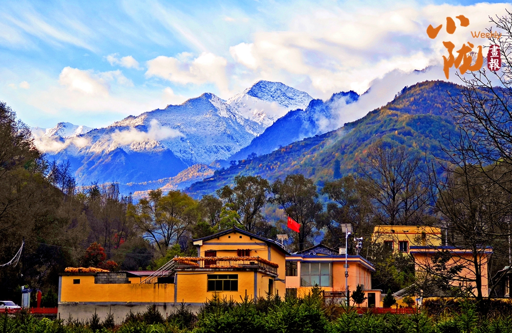 遠(yuǎn)處的雪峰與近處的彩林、藏式民居融為一體,形成一幅和諧畫卷。在這里,每一步都是一幅畫,每一眼都是一首詩。
