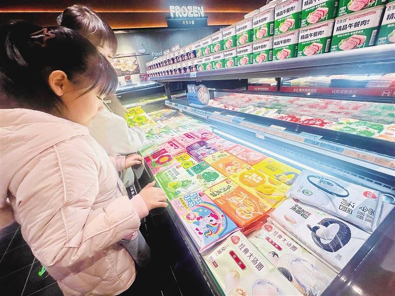 市民趙女士精心挑選果味元宵:“上次購買的這款爆心啵啵元宵口感清爽細膩,老人孩子都愛吃,我們還跟著教程做了不同吃法,這不馬上快元宵節(jié)又逢開學,特意多囤一些。”市民李女士帶著孩子選購了一款“馬到成功”奧巧味元宵。“往年多吃黑芝麻、水果味的元宵,今年想嘗點新意,這款價格實惠,孩子也喜歡。”李女士說。