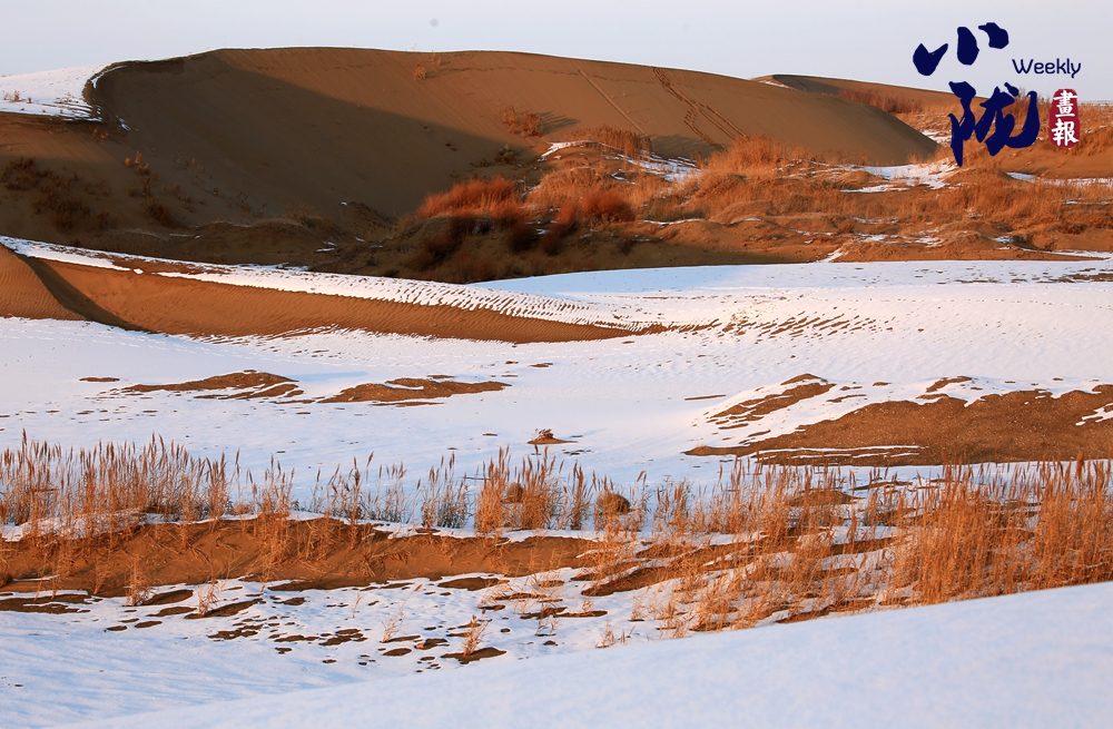 白雪覆蓋著金黃沙丘,而枯黃的蘆葦仍倔強(qiáng)生長(zhǎng)于沙地之間。這不僅是色彩的疊映,更構(gòu)成了一幅堅(jiān)韌的畫卷:冷與暖、靜與動(dòng),在遼闊的天地間,交織成一篇關(guān)于守望與重生的故事。