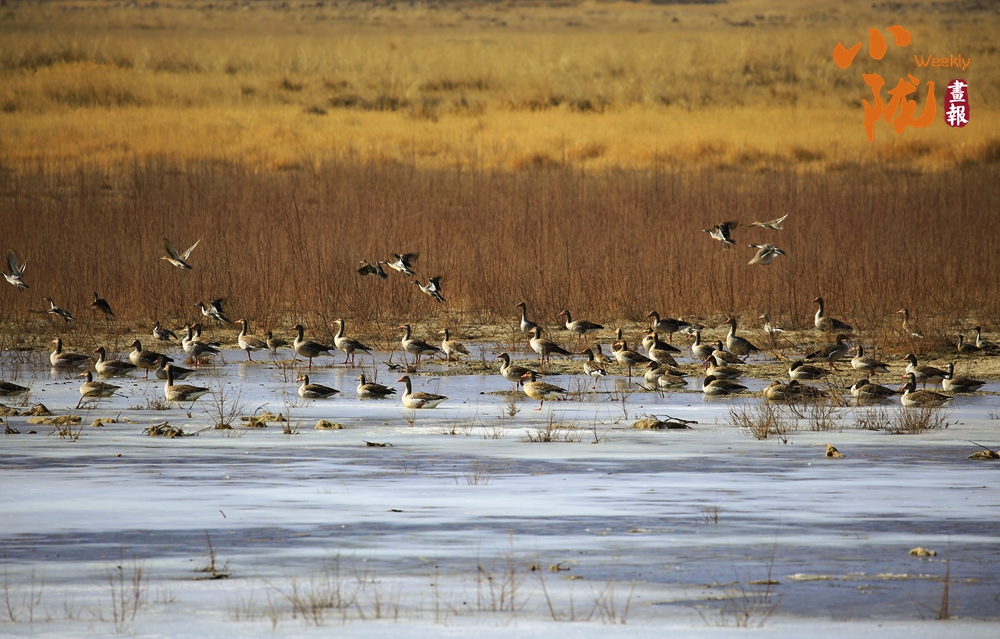冬日濕地,鳥(niǎo)類或靜立冰面,或翩然飛越金黃蘆葦。每年候鳥(niǎo)遷飛之季,赤麻鴨等國(guó)家重點(diǎn)保護(hù)鳥(niǎo)類在此棲身,鳥(niǎo)鳴與葦浪聲交織回蕩,宛如自然寫就的生態(tài)詩(shī)篇。