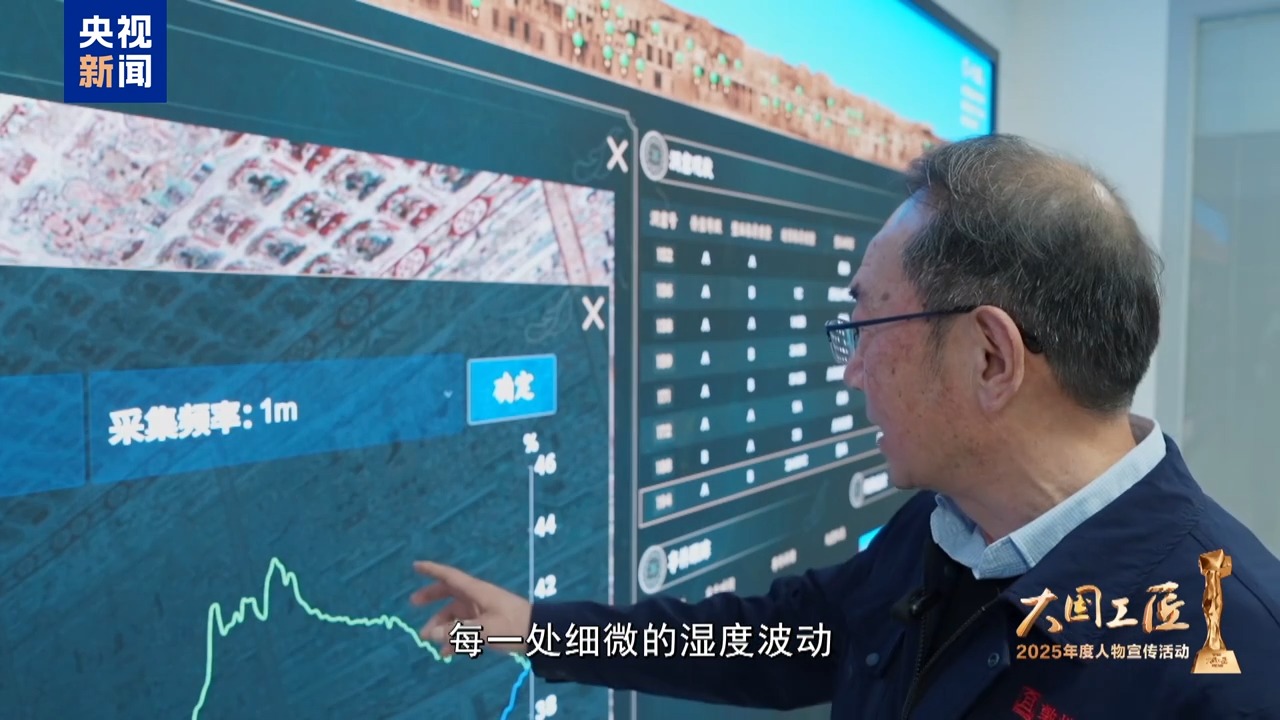 每一處細(xì)微的濕度波動(dòng)都會(huì)給壁畫帶來(lái)影響,樊再軒仔細(xì)觀察著石窟監(jiān)測(cè)系統(tǒng)上的數(shù)據(jù),隨后又帶領(lǐng)團(tuán)隊(duì)進(jìn)入洞窟,對(duì)壁畫進(jìn)行復(fù)查。