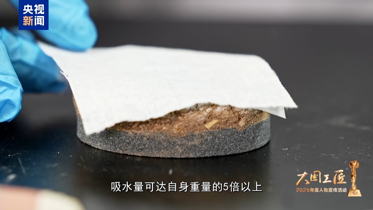 反復(fù)探尋,樊再軒和團(tuán)隊(duì)終于鎖定了一種最優(yōu)材料,吸水量可達(dá)自身重量的5倍以上,持水性能優(yōu)異,并且不會(huì)對(duì)珍貴壁畫造成損傷。