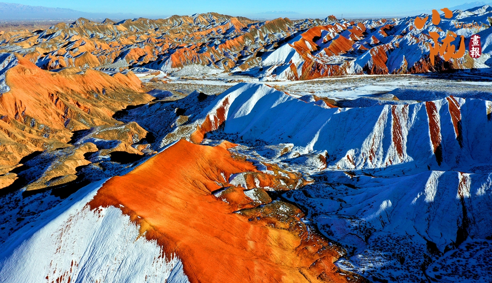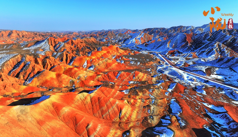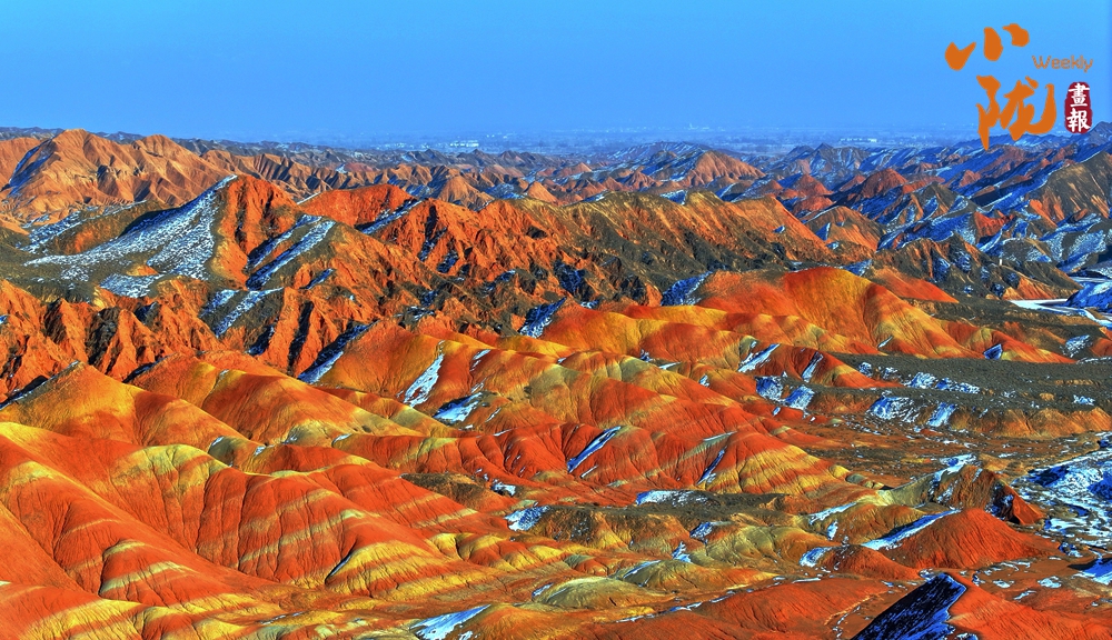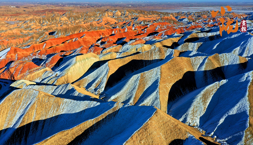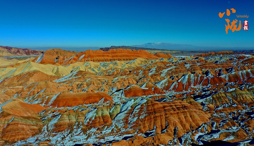 一場春雪后,臨澤七彩丹霞褪去了往日的張揚(yáng),化身為一幅“半是火焰、半是海”的水墨丹青長卷。