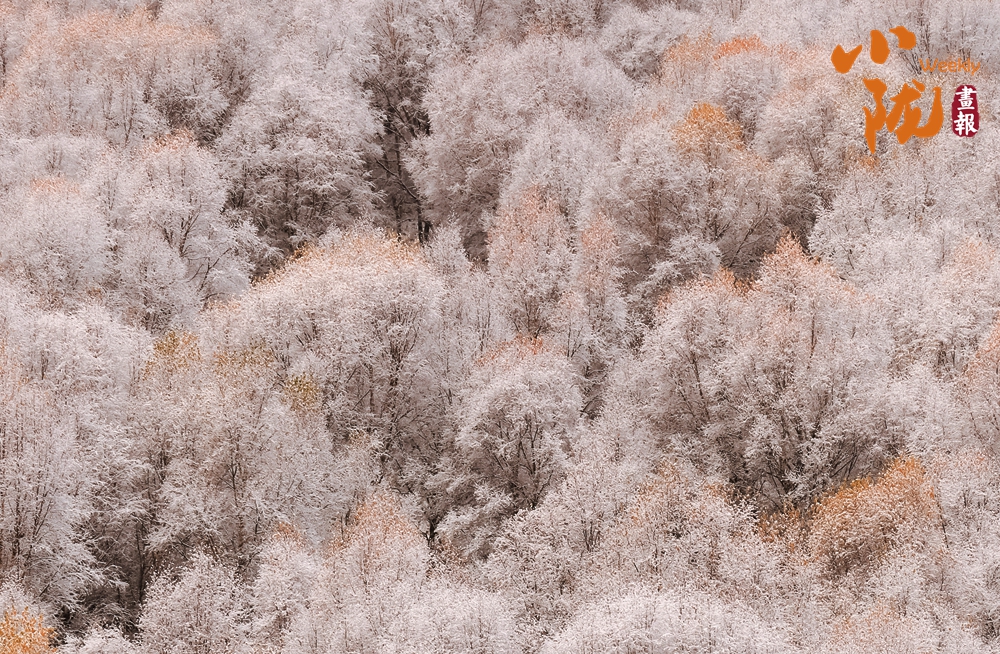 山腰墨綠色的松林,松枝上掛滿了毛茸茸的雪凇。那不是雪,那是大自然最細(xì)膩的工筆,描繪出的雪凇奇觀。風(fēng)起時(shí),細(xì)碎的冰晶簌簌飄落,折射出萬千銀光,如夢(mèng)似幻。