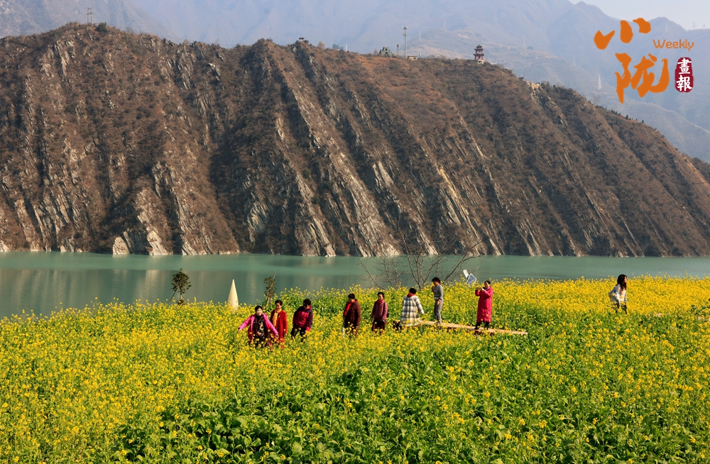 那一叢叢、一簇簇的油菜花,沿著梯田層層疊疊,從江邊一直蔓延到半山腰,鋪展在青山碧水之間;又像是大地剛剛蘇醒時,打翻的調(diào)色盤。